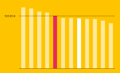 Nel grafico trovi la spesa annua di una famiglia media. Abbiamo confrontato le offerte digitali dei 10 principali fornitori. Alcune includono promo “a tempo”: ad esempio, la nostra comprende 30 € di sconto sul primo anno. Dove vedi la , significa che l'offerta è certificata come "green".